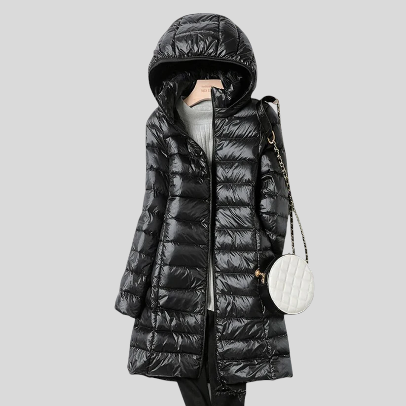 Denne jakke er designet til at give maksimal varme med en let og behagelig fornemmelse. Den vatterede konstruktion sikrer effektiv isolering mod kulde, mens den længere længde og den omsluttende krave giver ekstra beskyttelse og et elegant udtryk. Et ideelt valg til dig, der ønsker komfort, funktionalitet og stil i vinterhverdagen.