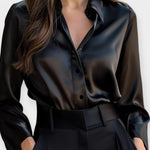 Ellen | Satin skjorte udstråler rolig luksus og tidløst design, der løfter enhver garderobe. Håndværket kommer tydeligt til udtryk i nænsomme sømme og stofets glans, udvalgt for sin holdbarhed og silkefald. Med begrænset oplag er Ellen mere end en skjorte — den er en investering i langtidsholdbar stil og en diskret signatur af brandets provenance. Den elegante krave og den løse pasform skaber en alsidig silhuet, der passer til alle kropsformer og lejligheder.