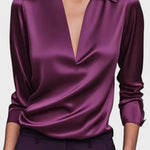 Ida | Satin skjorte udstråler fornem luksus gennem høj kvalitets satin og en sofistikeret V-hals. Den silkebløde overflade føles behagelig mod huden og sikrer komfort hele dagen. Skjorten er skabt med omhyggeligt håndværk og omtanke i oprindelsen: udvalgte materialer, diskrete syninger og en glans, der holder gennem sæsonerne. Den tilbyder tidløs værdi og en samlerappel – et plagg, der kan tones ned eller tones op afhængig af anledning. Med et let, åndbart snit er den både afslappet og struktureret, perfekt under en blazer eller alene i varme måneder.