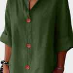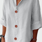 Thilde | Linned skjorte fremkalder tidløs elegance gennem naturmaterialer og håndværkets omhu. Den cremefarvede nuance og premium hør giver en åndbar, kølig pasform, der glider let over huden. Den æstetiske balance mellem 3/4-ærmer og kantede detaljer tilføjer et gennemført look, og frontknapperne i naturligt træ giver et diskret, organisk præg, der gør skjorten alsidig til både hverdags- og mere polerede outfits. Som en ægte investering i garderoben udstråler Thilde lang levetid og en eksklusivitet, som samlere værdsætter.