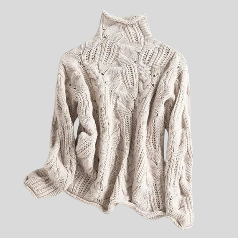 Blød, eksklusiv og utrolig behagelig – denne striktrøje med høj hals er skabt til de kolde dage, hvor du vil føle dig varm og se velklædt ud. Det smukt strukturerede mønster giver et elegant og moderne udtryk, mens den afslappede pasform sikrer maksimal komfort. Perfekt til jeans, nederdele eller klassiske bukser – en uundværlig favorit, du får lyst til at bruge igen og igen.