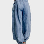 Ellen | Ariselisse Bukser forener håndværk og tidløs elegance i et par jeans, hvis detaljer taler med diskretion og tydelighed. En skræddersyet elastisk pasform, skabt af et blødt taljebånd og en høj talje, flatterer figuren og sikrer komfort gennem dagen. Den rummelige, brede benlinie skaber en moderne silhuet, der passer lige så godt til hverdagslook som til aften. Bevidst brug af premium materialer og omhyggeligt håndværk gør Ellen til en investering i tidløs værdi, hvor holdbarhed og patina giver langsigtet appel. Produktionen er begrænset og tilfører ægte samlerglans uden at gå på kompromis med funktion.
