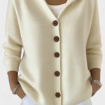 Mathilde | Hættetrøje Cardigan indkapsler diskret luksus i hverdagen og afslører en forfinet sans for materialekvalitet. Det bløde strikmateriale binder varme og åndbarhed sammen, mens træknapper og ren knaplukning giver en elegant finish. En omsluttende hætte og en tidløs, enkel silhuet gør Mathilde nem at style til både jeans og kjoler. Med nordisk arv af håndværk og omtanke signalerer Mathilde kvalitet og langsigtet værdi, og det begrænsede antal i kollektionen gør den til en investering i tidløs stil og samlerappel.