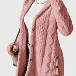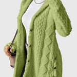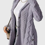 Sofia | Strikcardigan er et mellemlangt stykke, der forener en elegant strikstruktur med blød komfort. Den åbne front med små knapper langs siderne og ærmerne tilfører en fin og hyggelig elegance, der passer til både kontorlook og weekendstil. Den klassiske flettekstur og den let bølgede kant tilfører dybde og charme og gør cardiganen til et tidløst fundament i din garderobe. Vævet i en kvalitets polyesterblanding giver den varme og blødhed uden at tynge eller begrænse bevægelsen. Den midtlange længde forlænger silhuetten og sikrer tilstrækkeligt dækkende look. Med sin begrænsede tilgængelighed bærer den en ejerfølelse og samlerværdi, hvilket gør Sofia til en overlegen investering for den stilbevidste garderobe.