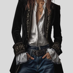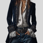 Denne jakke udmærker sig ved sit raffinerede vintageudtryk og de fine broderede detaljer, som giver et eksklusivt præg. Den strukturerede pasform fremhæver silhuetten, mens de dekorative elementer tilfører dybde og elegance. En markant jakke til dig, der værdsætter autentisk stil, tidløs elegance og kunstneriske detaljer.