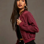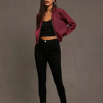 Ida | Let bomberjakke hylder tidløs elegance og omhyggeligt håndværk. Den korte, strukturerede silhuet sidder ved taljen og skaber en ren, urban profil, mens letvægtsmaterialet giver komfort gennem forår og milde efterårsdagene uden at gå på kompromis med eksklusivitet. En investering i håndværkets omtanke og designarv, der nemt styles med jeans, træningsbukser eller en nederdel og løfter hverdagslooket til et mere raffineret udtryk.