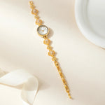 fra NÖMI Ur udstråler tidsløs elegance gennem et moderne design og håndværkets omhu. Den runde form, den guldfarvede finish og det lysreflekterende ydre fanger blikket uden at true bæreren og står som et symbol på selvtillid og raffineret stil. Fremstillet i få serier er Ella ikke blot et ur, men et varigt samlerobjekt for den stilbevidste kvinde. Den lette konstruktion og behagelige pasform giver hverdagsluksus, hvor klassisk æstetik møder nutidig letvægts og langtidsholdbarhed.