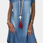 Saga | Denim kjole forener sommerlig lethed med tidløs håndværk og en arv af kvalitetsmaterialer. Den letvægts denim præsenterer en ren, klassisk silhuet, der giver komfort og raffinement i alle situationer. Den afslappede pasform og rund halsudskæring vidner om omhu i hver søm, mens den varige elegance og diskrete luksus tiltaler den bevidste samler. Begrænset oplag gør Saga | Denim kjolen til en eksklusiv del af en premium garderobe og en investering i tidløs stil.