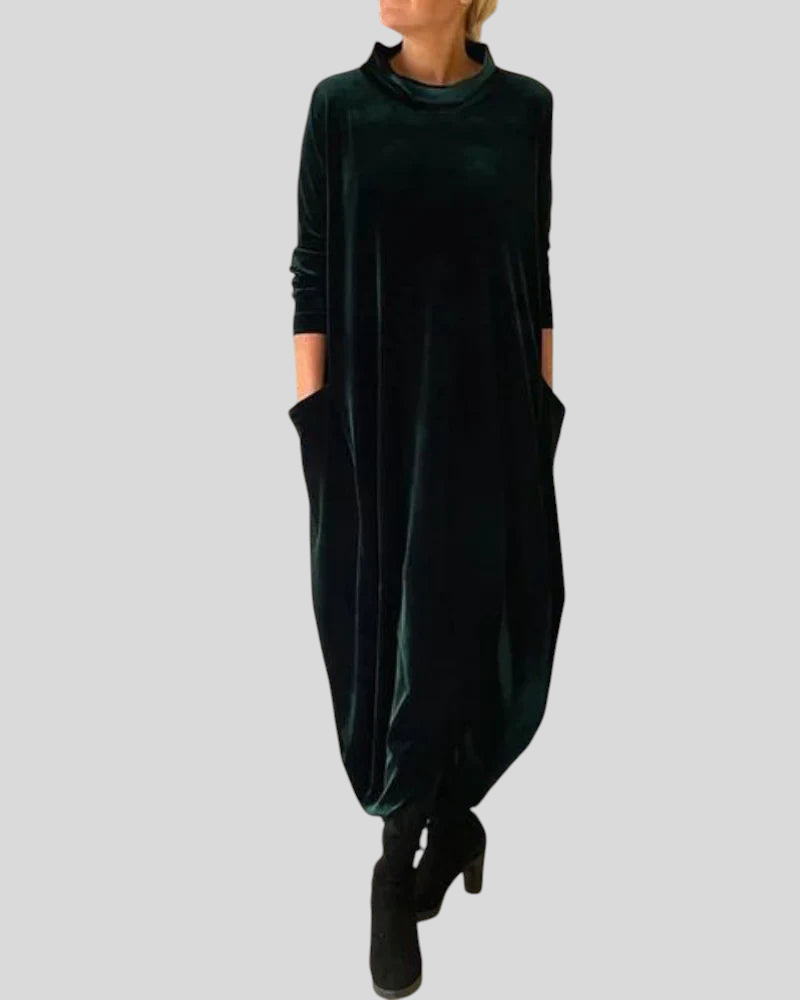 Denne lange kjole er indbegrebet af komfort med et sofistikeret udtryk. Den løse og lette pasform giver et smukt fald, der klæder alle kropstyper uden at stramme eller markere. Den elegante krave tilføjer et moderne og stilrent touch, mens sidelommerne gør den ekstra praktisk til hverdagen. Perfekt med støvler, sneakers eller hæle – en alsidig kjole, der nemt kan styles fra casual til elegant.