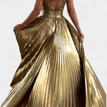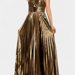 Lene | Maxikjole er den elegante nyskabelse fra Aikaterini, hvor raffinement møder mod i en glinsende maxi-silhuet. Den luksuriøse metalliske stof fanger lyset ved hver bevægelse og giver en sofistikeret glans, der udstråler selvtillid uden at råbe. Den krydskrydset krave og de strategiske læg skaber en struktureret silhuet, der bevæger sig let og tilfører dybde samt en eterisk bevægelse. Den ærmeløse silhuet gør kjolen ideel til sommeraftener, eksklusive fester og mindeværdige indtog, hvor et varigt, diskret luksuriøst indtryk er målet. Lene | Maxikjole står som et tidsløst stykke, hvis håndværk og omtanke for detaljer kendetegner Aikaterini-design. Begrænset antal tilgængelige stykker lover eksklusivitet og langvarig værdi for samleren.