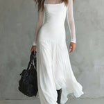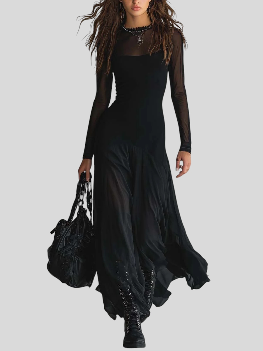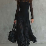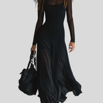 Flydende, sofistikeret og med et strejf af mystik – denne lange kjole er perfekt til dig, der vil have et look med wow-effekt uden at gøre for meget. Det lette stof skaber smuk bevægelse for hvert skridt, mens den tætsiddende pasform fremhæver din silhuet på en elegant måde. De gennemsigtige ærmer og den diskrete udskæring giver et raffineret, sensuelt udtryk – ideel til særlige events, middage eller aftener, hvor du bare vil stråle.