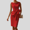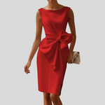 Denne kjole udstråler raffineret elegance og skiller sig ud med sin markante sløjfedetalje, som fremhæver silhuetten på en feminin og sofistikeret måde. Den tætsiddende pasform skaber et elegant udtryk, mens det afbalancerede design giver et moderne og eksklusivt look. Perfekt til særlige begivenheder og formelle anledninger.