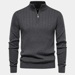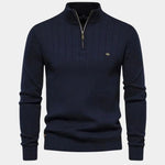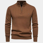 Mikkel™ | Halvzip Bomuldstrøje udstråler tidløs luksus og uovertruffen håndværk. Fremstillet i 95% bomuld og 5% elastan giver den en let, mærkbar pasform og behagelig bevægelsesfrihed. De lodrette striber og den elegante halv-zip skaber et sofistikeret look, der passer til både dagligdag og aften. Med omtanke for materialer og detaljer er Mikkel™ en investering i kvalitet, der holder sin stil år efter år.