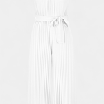 Patrizia | Heldragt udstråler arkitektonisk minimalisme og håndværksmæssig præcision. Med rene linjer, draperede læg og en halterneck fremstår den tidløs og sofistikeret – ideel til begivenheder, hvor stil taler for sig selv. Det plisserede stof tilfører tekstur, lethed og bevægelse, mens Palazzo-snittet flatterer kroppen. Begrænset produktion gør den særligt eksklusiv og kollektorattraktiv, en investering i tidløs kvalitet og arv. Patrizia giver en moderne, diskret luksus til bryllupper, sommerfester og andre begivenheder, hvor silhuetten står i centrum.