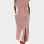 Ceecee Midikjole er en tidløs klassiker, der forener rene snit med subtile detaljer og en håndværksmæssig præcision, der signalerer ægte prestige. Den ensfarvede overflade, de diskrete knapper og den praktiske lomme giver en alsidig signatur, der passer fra kontoret til formelle arrangementer. Den omhyggelige konstruktion og materialernes kvalitet sikrer lang levetid og en varig samlerappel — en investering i tidløs elegance og kærligt håndværk. Håndværk i særklasse: Præcisionssømme og omhyggelig finish afspejler dedikation til perfektion og lang levetid. Signaturdetaljer og rund halsudskæring fastholder Ceecee Midikjole sin elegante karakter, mens midi-længden balancerer komfort og raffinement. Begrænset tilgængelighed og samlerappel: Denne kjole er en eksklusiv signatur, der øger sin værdi gennem årene.