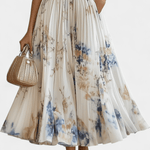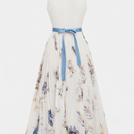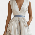 Elise | Maxi-kjole forener klassisk romantik med moderne friskhed og udstråler en tidløs elegance, der tiltaler den krævende garderobe. Den hvide sifon-kjole, prydet med et blomsterprint, fremhæver en flatterende V-hals og et A-line snit, mens fin plisering tilfører bevægelse og let tekstur. Et justerbart taljebælte fremhæver silhuetten, og fuld foring samt en diskret bagpå lukning sikrer komfort og en veldefineret form hele dagen. Stoffets lethed og håndværkstraditionen udtrykker varig værdi og kollektionens prestige, hvor omhyggeligt udvalgte materialer og sans for detaljen går hånd i hånd med arv og kvalitet. Elise Maximekko står som et design, hvor tidløs stil møder moderne bevidsthed og bliver et elsket tillæg i garderoben år efter år.