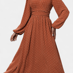 Faela | Midi-kjole repræsenterer vintage-chic og tidløs elegance, skabt til det moderne kontormiljø. Den forener delikate sveitsiske prikker med en struktureret midi-snit og en kropsnær silhuet, der udstråler selvtillid uden prætentiøsitet. Lange ærmer tilfører alvor, mens tekstur og det tidløse snit skaber en gennemført, elegant fremtoning. Håndværksmæssig kvalitet og nøje udvalgte materialer giver kjolen en varig arv i garderoben, og Produktionsbegrænsningen understreger eksklusivitet uden at gå på kompromis med alsidigheden. Faela er en investering i tidløs værdi og samlerappel — en kjole, der fortsat vil være relevant på tværs af sæsoner og begivenheder.