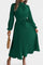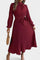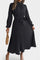 - Silhuet og detaljer: Den høje krave og den løftede talje kombineres med draperet taljebælte for en diskret, moderne grafik og komfort.