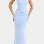 - Silhuet og korset: Struktureret korset former taljen og skaber en sofistikeret, kontureret silhuet.