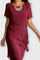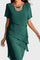 - Silhuet og detaljer: Elegant, dækkende silhuet med rund halsudskæring og korte ærmer for sofistikeret balance.