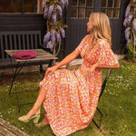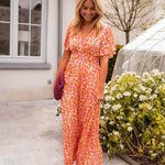 Marlene | Maxikjole udstråler tidløs luksus gennem sit farverige blomsterprint og et let, flydende stof, der smyger sig omkring kroppen i en flatterende silhuet. Kjolen er skabt med omhyggeligt håndværk og afspejler lange traditioner og dedikation til materialer af høj standard, samtidig med at den leverer komfort uden at kompromittere elegance. Den dybe V-udskæring og den snævre talje fremhæver feminine konturer, mens det elastiske rygpanel sikrer bevægelsesfrihed hele dagen. Lurex-trådens diskrete glans tilfører et strejf af glamour uden overdrivelse. - Provenance og kollektion: Pernille-kollektionen står for kvalitet og oprindelse, og historien bag hvert stykke er forfinet gennem håndværk og omtanke. Med begrænset antal får Marlene en naturlig samlerværdi og en tidløs kvalitet, der står imod sæsonens skiftende trends og giver lang levetid i garderoben.