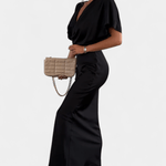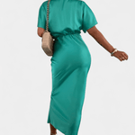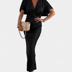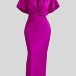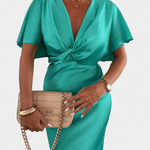 - Pernille | Midi kjole præsenteres i en eksklusiv ensfarvet silhuet med V-formet wrap-udskæring, der flatter taljen.