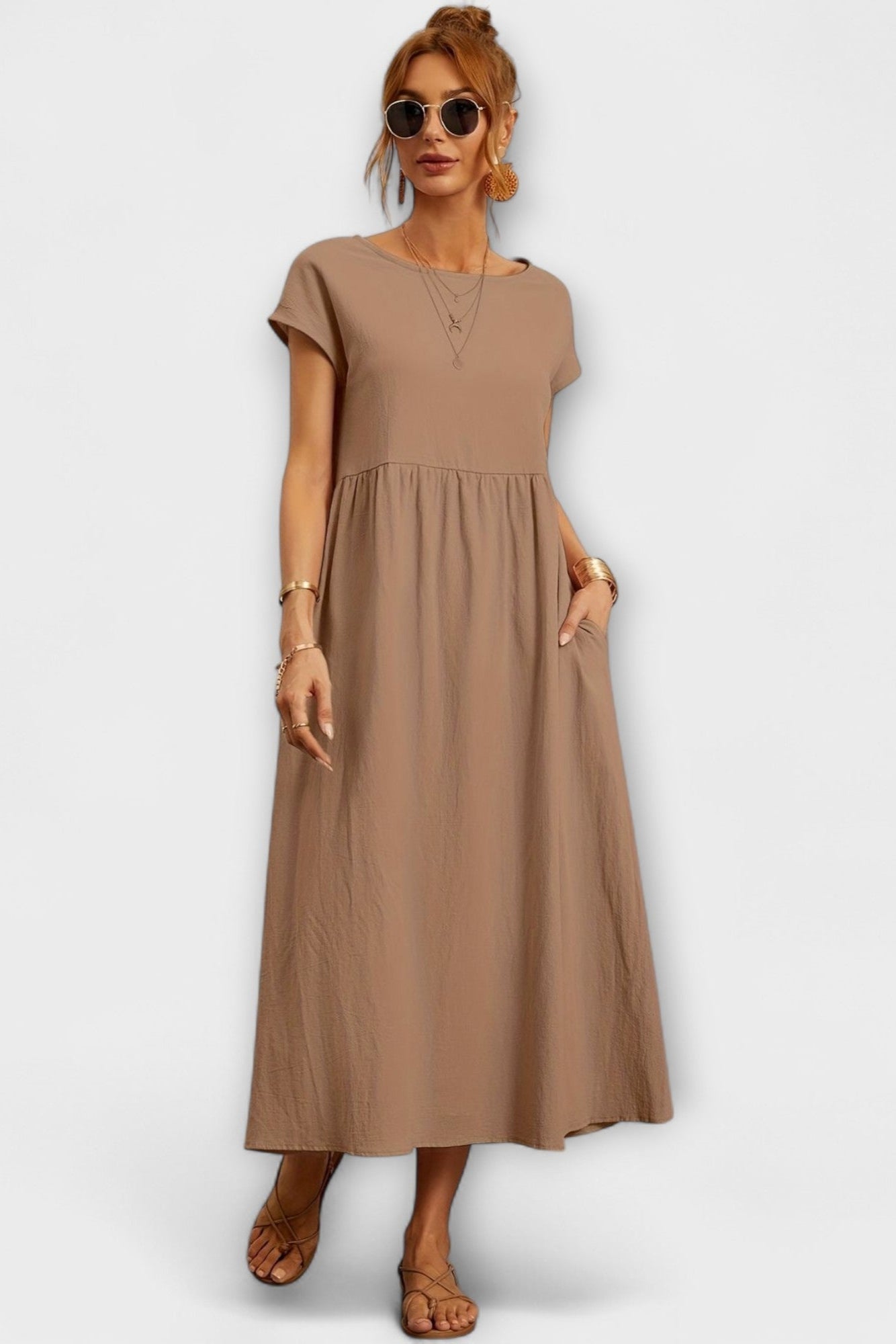 Pernille | Sidelommer kjole er en investering i tidløs elegance og håndværksmæssig omtanke. Kjolen kombinerer en let, åndbar pasform med en klassisk midilængde, der gør den alsidig til både hverdag og finere begivenheder. Den runde halsudskæring og de diskrete sidelommer bevarer den rene silhuet, mens materialer og snit vidner om et håndværk af høj kvalitet. Designet henvender sig til den moderne garderobe og fastholder sin værdi gennem en tidløs æstetik og komfort, som passer hele året. Den lette, luftige konstruktion giver fri bevægelse uden at miste form, og Pernille giver mulighed for alsidig styling – fra sommerlige sandaler til tilbehør, der løfter et mere raffineret look. Pernille er en klassiker i enhver samling, der værdsætter omtanke og kvalitet, og dens begrænsede tilgængelighed giver en naturlig samlerappel.