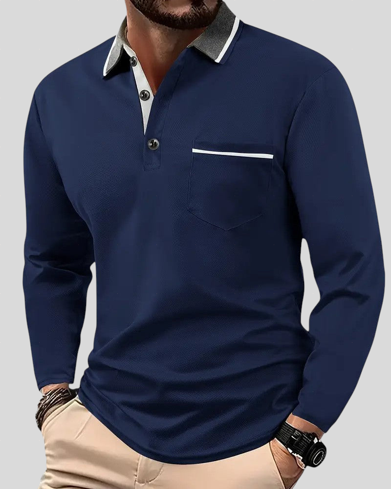 Denne langærmede polotrøje redefinerer begrebet afslappet elegance. Med et fejlfrit snit, kontrastkrave og raffinerede detaljer giver den et sofistikeret udtryk uden at gå på kompromis med komforten. Perfekt til enhver lejlighed – fra arbejdsmiljøet til fritiden – og et ideelt valg for mænd, der værdsætter stil, kvalitet og alsidighed i hverdagsgarderoben.