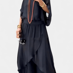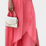 - Lagdelt wrap-skørt — Asymmetrisk konstruktion og lagdelt detaljer følger kroppen i lette draperinger.