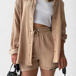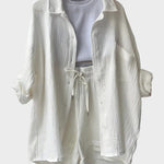 Astrid | Sommer sæt repræsenterer en tidsløs signatur fra vores kollektion. Dette letvægts-sæt består af en let skjorte og matchende shorts, designet til varme dage, hvor åndbarhed og komfort står i forgrunden. Håndværket afspejler arv og provenance gennem rene snit, præcise sømme og subtile detaljer. Med en begrænset produktion er det mere end tøj – det er en investering i varig værdi og en fornemmelse af prestige i sommergarderoben.