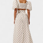 Ditte | Sæt udstråler tidløs elegance og en legende attitude. Sherine-designet tilfører et flirtende præg til både dag- og aftenlooks og forener feminin appel med et moderne snit. Det klassiske polkadot-mønster, de elegante pufærmer og den højt liv nederdel med frontslids skaber en sofistikeret balance mellem stil og komfort. Silhuetten er kropsnær med let stretch, og den diskrete bagpå lynlås giver et rent, sammenhængende look, der kan bæres år efter år og bevare sin elegante karakter.
