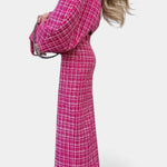 Ella | Tweed sæt repræsenterer en sofistikeret fortolkning af tidløs elegance, hvor fransk snit møder en stærk, moderne ånd. Sættet består af en struktureret jakke og en A-linjet nederdel i fint rutet tweed, hvis håndværk taler gennem gennemførte snit og materialer af høj kvalitet, der vidner om arv og omtanke for detaljer. Den klassiske ternede mønster er tidløst og alsidigt og gør Ella til en investering, der bæres år efter år og signalerer selvtillid og god smag i forretningsmøder, eksklusive eftermiddagste og særlige begivenheder.