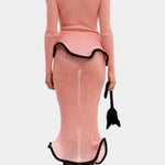 Emma | Langærmet Stormi er en sofistikeret sammensætning, der forener femininitet og mod i en ligefremt elegant balance. Den ribstrikkede overdel kysser én skulder, mens det halvtransparent midi-skørt skaber en legende, raffineret silhuet. Hvert materiale og hver søm vidner om håndværkets præcision og omtanke; en diskret spejlfinish tilføjer lysende refinement og taler til modellens oprindelseshistorie og tidløse kvalitet. Den lyserøde nuance tilfører varme og modernitet, og Stormi fremstår som et tidløst objekt for den bevidste garderobe og for samlere, der søger sjældne, veludførte stykker. Med begrænset oplag og udvalgte materialer repræsenterer Stormi en investeringsværdi, der taler til moderne stil gennem sæsoner og årstal.