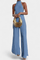 - Design: Asymmetrisk halterneck-top med åben ryg og høj krave, kombineret med lange, brede bukser.