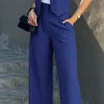Helene | Sæt udstråler tidsløs luksus gennem solidt håndværk og omtanke for detaljer. Dette todelte sæt består af en skræddersyet vest og brede bukser, designet til den moderne kvinde, der søger rolig, kontrolleret elegance. Stoffet er nøje udvalgt for åndbarhed og rynkefrihed, så Helene | Sæt følger kroppens bevægelser fra morgenmøde til aften. Vienna står for arv og kvalitet uden prangende hype og giver en tidløs appel i garderoben. Med begrænset tilgængelighed understreger Helene | Sæt eksklusivitet og lang levetid i klassiske farver.