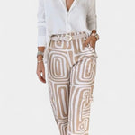 Kirstine | Sæt udstråler moderne luksus, hvor velafvejet komfort møder hverdagsfleksibilitet. Den lette top med en let struktureret krave og de matchende bukser skaber en subtil, elegant silhuet, der passer til enhver lejlighed – fra afslapning derhjemme til rejser og byens diskrete stil. bag Kirstine ligger håndværk og omtanke: hvert sting udføres med præcision, og materialerne vælges for lang levetid og vedvarende stil. Sættet udtrykker ægte tidløshed og en bevidst, begrænset tilgængelighed, som samlere og modebevidste værdsætter.