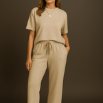 • Pasform og komfort: Løs pasform giver bevægelsesfrihed og en rolig, sofistikeret silhuet; top og bukser udgør et komplet look.