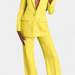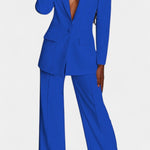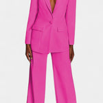 Ronja | Sæt udstråler tidløs raffinement og diskret eksklusivitet. Det skarpe snit møder en blød tekstur og skaber en selvsikker, stilfuld figur. Den enkeltknaplukket blazer i dyb V-udskæring og markerede skuldre giver en sofistikeret silhuet, mens de højtaljede, brede bukser skaber en slank, lang linje. Sættet står som bevis på håndværk og provenance: udvalgte materialer, præcis snit og omtanke for detaljer, der tiltaler dem, der værdsætter kvalitet og lang levetid. Begrænset produktion giver eksklusivitet og samlerværdi, som ikke blot følger sæsonen, men bliver en værdifuld tilføjelse til garderoben over tid. Det afspejler mærkets arv og langtidsholdbare tilgang til design.