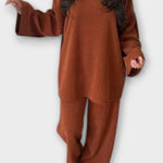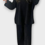 - Oversized snit: Langærmet top og lige bukser skaber fri bevægelse og en harmonisk silhuet.