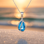 - Design: Håndlavet vedhæng med bølgende mønster omkring stenen; en let, luftig silhuet.