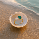Kirstine | Sølvring Lylia forener havets poesi med nordisk håndværk i en let, tidsløs silhuet. Den åbne form symboliserer bølgernes uendelige bevægelse, mens naturperlen og en dybt turkis emaljeret sten fanger havets hemmeligheder og tropiske farver. Håndlavet i 925 sølv af en erfaren mester udstråler ringen ægte kvalitet og en varig, skinnende finish. Den justerbare åbning giver en personlig pasform uden at gå på kompromis med elegance. Lylia vokser med tid og bliver et diskret arvestykke med begrænset tilgængelighed, der tilfører samlerappel og tidløs værdi.