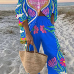 Silje | Fransk Sæt står som et udsøgt eksempel på håndværk og arv. Med French Bloom integrerer sættet modige farver, legende blomsterprint og en afslappet, fransk energi, der udstråler selvtillid og tidløs elegance. Materialekvalitet og omhyggeligt snit afspejler en begrænset produktion, hvor hver detalje taler håndværkets omtanke. Den løse knappebluse fremhæves af en indrammet Très Chic de Vous-tekst og grafiske planteprints, mens de brede bukser skaber en dramatisk silhouet. Silje kan styles nedtonet til hverdagsglans eller opgraderes til sæsonens mest sikre statement. Sættet er en investering i langtidsholdbar kvalitet og eksklusiv samlerværdi, der afspejler fransk arv og tidløs æstetik. Perfekt til brunch, strand og sommeraftener — et varigt statement i garderoben og en ægte samlerværdi.
