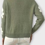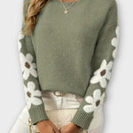 - Delikat blomsterprint på ærmerne: Tilføjer romantik og sofistikeret detalje uden at forstyrre trøjens æstetik.