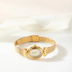 Amalie | Minimalistisk ur er skabt til den moderne kvinde, der værdsætter klare linjer og tidløs elegance. Den varme gyldne nuance og den ovale skive giver et sofistikeret retroudtryk, mens den slanke rem sikrer enestående komfort. Dette ur er mere end et tilbehør; det afspejler håndværk og omtanke i materialer og finish, og dets konstruktion er udformet til lang levetid og en diskret, men mærkbar patina. Med sin tidsløse æstetik kan Amalie bæres til kontoret, til middag eller til festlige lejligheder, og den balancerer enkelhed med hverdagsfunktion. Begrænset i antal fungerer den som et særligt objekt for samlere og stilbevidste, der værdsætter substans over trend.