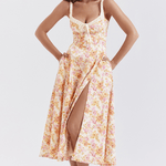Amelie | Midikjole udstråler tidløs elegance gennem udsøgt håndværk og arv. Den flydende silhuet og det lette polyesterstof giver en behagelig, let følelse mod huden, mens kjolen bevarer en sofistikeret æstetik. Som signaturdesign er produktionen begrænset og detaljer omhyggeligt udvalgt, hvilket sikrer en ærlig og vedvarende værdi, der ikke blot følger sæsonens mode men fastholder sin renhed gennem generationer. Dette investeringsstykke appellerer til samleren og den stilbevidste garderobe, der passer til fest, hverdagsbrug og aftenkonstellationer.