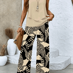- Silhuet og pasform – toppens lette drapering komplimenterer buksernes grafiske mønster og skaber en naturlig silhuet.
