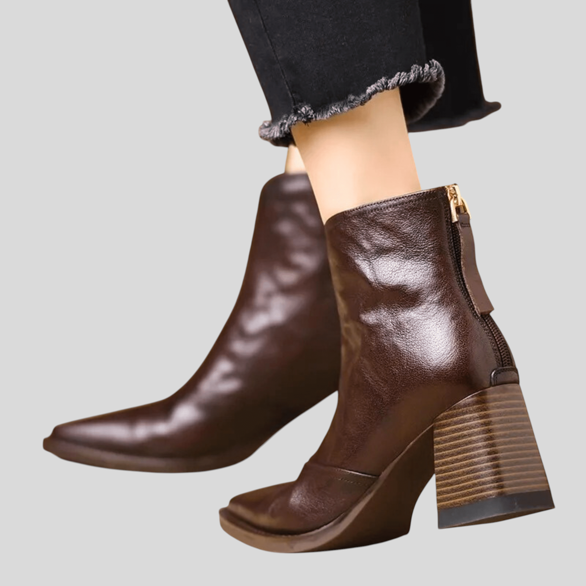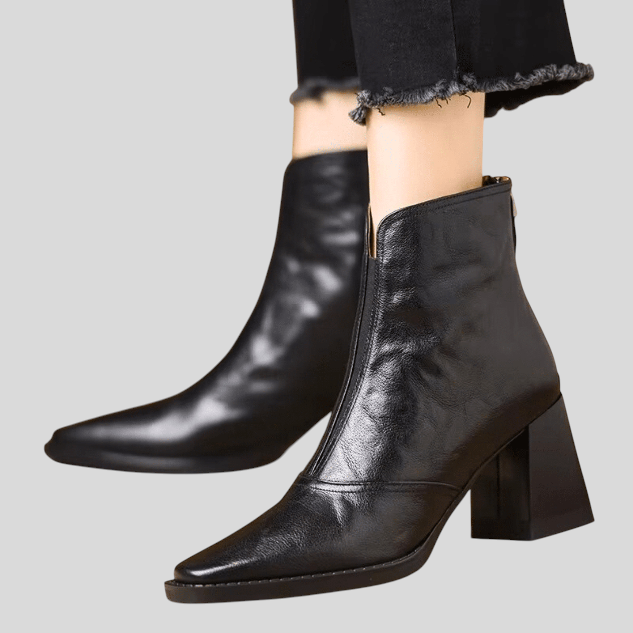 Disse støvler er det perfekte valg for kvinder, der ønsker at forene stil og komfort. Den eksklusive forarbejdning og det moderne snit skaber et elegant udtryk, mens den stabile mellemhøje hæl giver tryghed og korrekt holdning. Den forlængede form og frontudskæringen giver en visuelt slankende effekt og et raffineret look. Ideelle til både hverdagsbrug og mere elegante outfits.