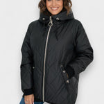 Den høje krave og hætte beskytter mod vind, mens ribkanten holder varmen inde. Den smidige lynlås gør påklædningen let og afspejler det omhyggelige detaljefokus, som kendetegner Elara.