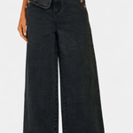 - Brede, højtsiddende jeans giver komfort og en moderne, afslappet line.