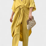 Frida | Sommer sæt udstråler tidløs elegance og omtanke for håndværk i særklasse. Det knyttede topstykke med V-udskæring og justerbart bindebånd fremhæver taljen naturligt, mens løse ærmer og flydende materiale bidrager til lethed og sommerlig stemning. De lige bukser balancerer silhuetten og skaber rolig bevægelse i solen. Sættet udtrykker kvalitetsbevidsthed uden anstrengelse og passer til sommerens mange øjeblikke. Begrænset antal og nøje udvalgte materialer giver Frida-sættet en tydelig følelse af eksklusivitet, tidløs prestige og appel til dem, der sætter håndværk i højsædet.